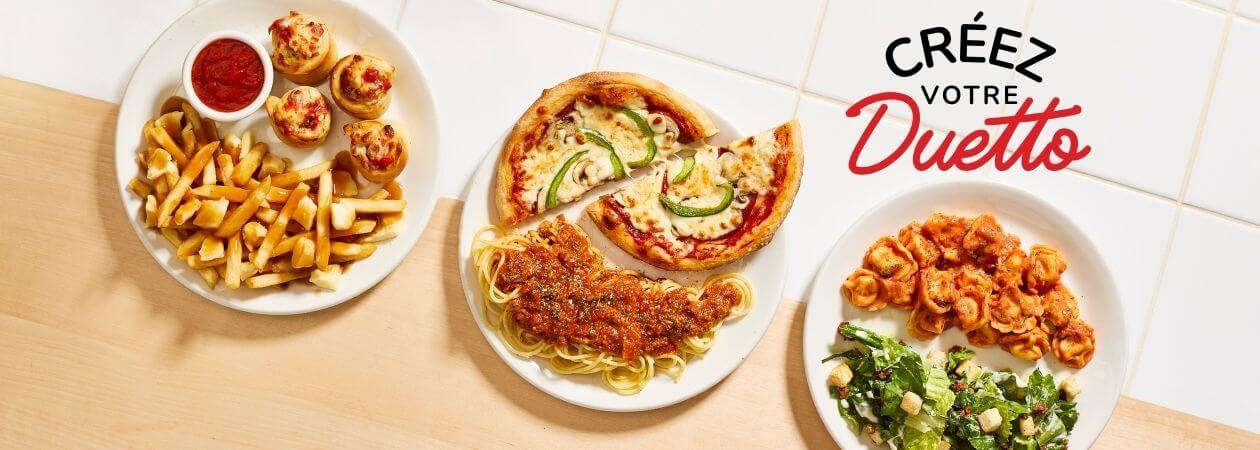 Tu hésites toujours entre une pizza, des pâtes ou un sous-marin ? Bonne nouvelle : avec les Duettos, tu peux enfin combiner deux plats que tu aimes dans une seule commande, sans compromis.