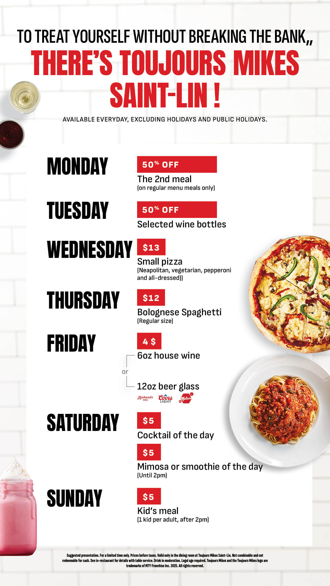 Discover discounts everyday in the dining room at Toujours Mikes Saint-Lin!